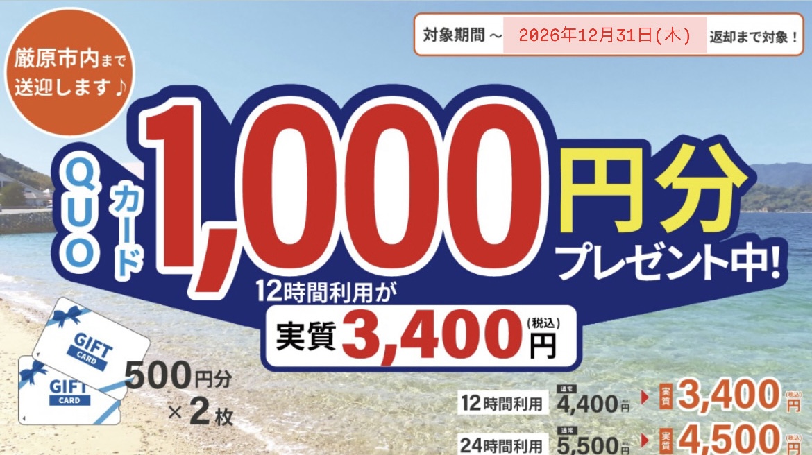 安心の保険完備や、お子様連れの方にはチャイルドシートなど、サービス万全です。